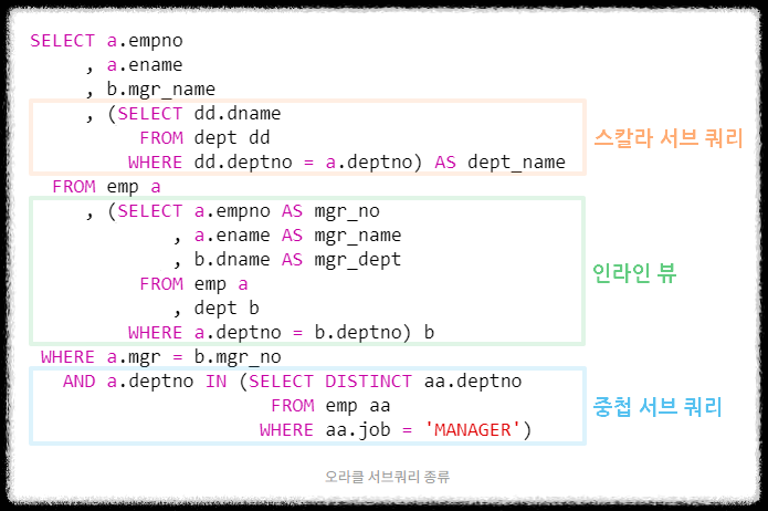 [Oracle] 오라클 서브쿼리 종류 및 사용법 (SubQuery)