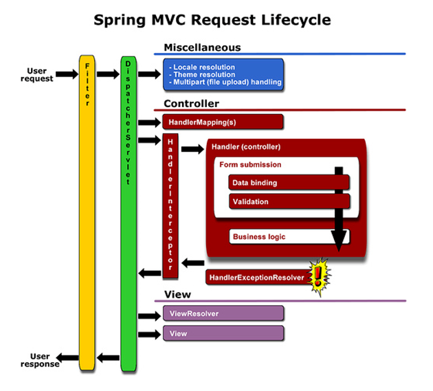 - Filter는 DispatcherServlet이 실행되기 전, Interceptor는 DispatcherServlet이 실행된 후.